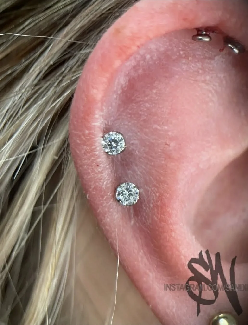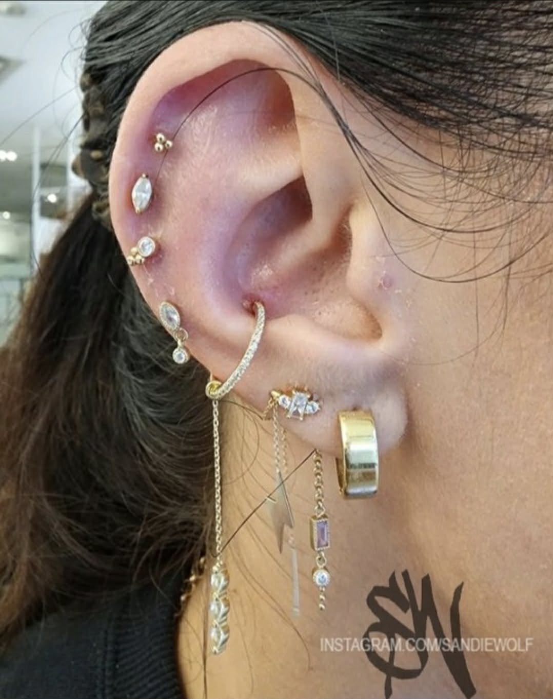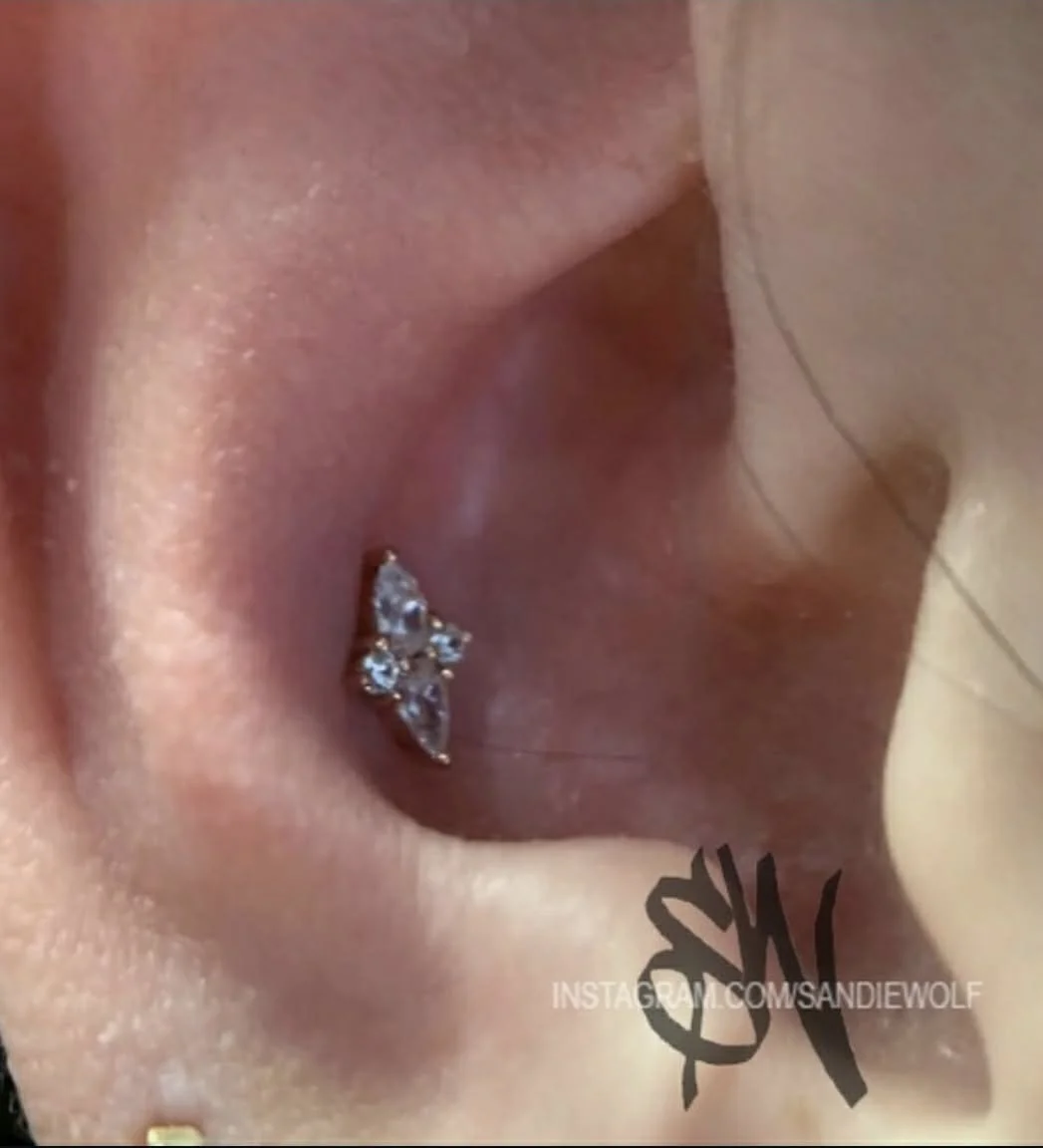 Sandie Wolf's tattoo style is illustrative, and her specialty in piercing is microdermals.